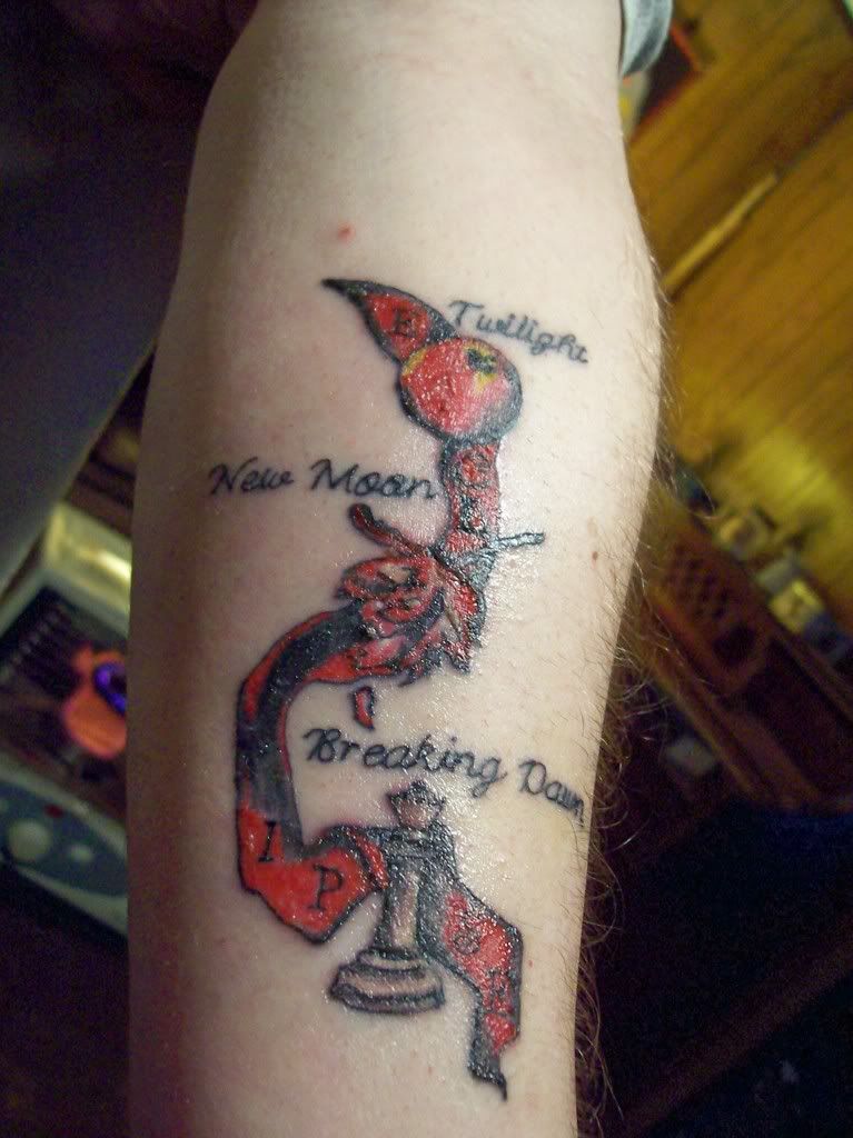Кто делает такие татуировки? - спросите вы. Вполне взрослые люди, потому что, например, в США ни один мастер не сделает вам татуировку без присутствия родителей, если вы младше 18 лет. Вам понравилось хоть что-нибудь? Сделали бы вы себе тату "Сумерки" или вообще татуировку?